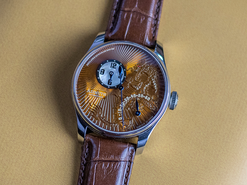 Azimuth’s first Round-1 RRM Dragon with the white mother-of-pearl dial represents the water element, while our second production presented the earth element through a reflective brown dial etched with the rays of the sun. A small white mother-of-pearl dial that tells the hours is set atop the brown dial, while the eyes of the dragon are set aglow with a touch of red to bring life to this majestic beast. The variant ends with the final two RRM Dragons presenting the fire and gold elements, through the use of red and yellow colour symbols respectively.